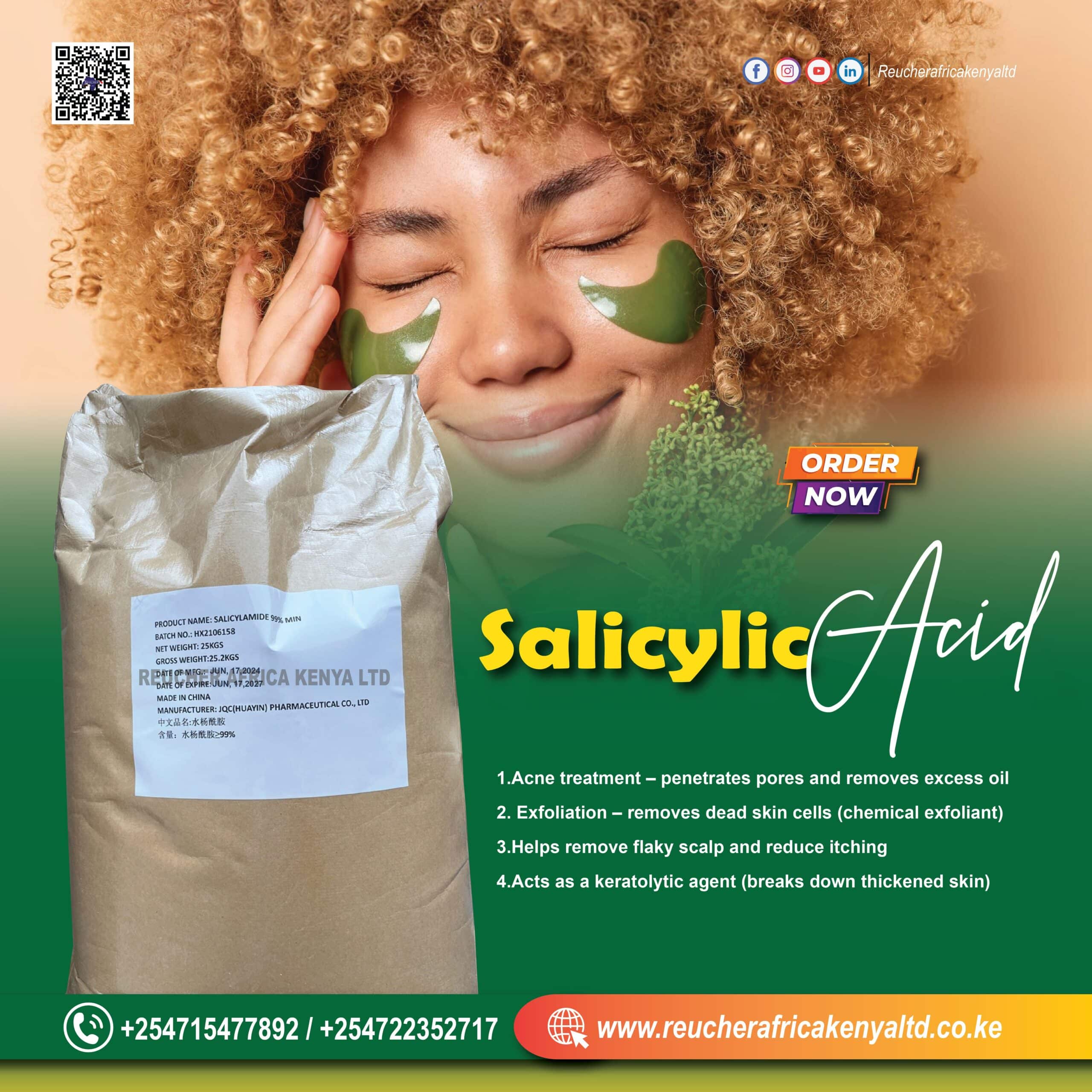 Salicylic Acid is a high-purity beta hydroxy acid (BHA) widely used in cosmetic, pharmaceutical, and personal care formulations. It is oil-soluble, allowing it to penetrate deep into pores to dissolve excess sebum, remove dead skin cells, and promote clear, healthy skin.